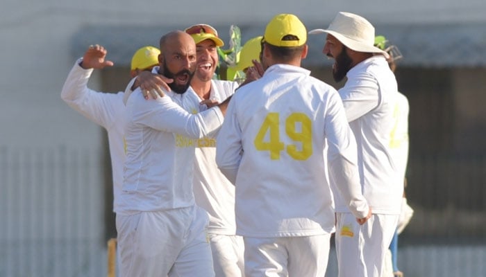 Sajid Khan bagged five wickets for 43 runs in the second innings, while Niaz Khan and Mir Hamza, made three and two scalps, respectively.